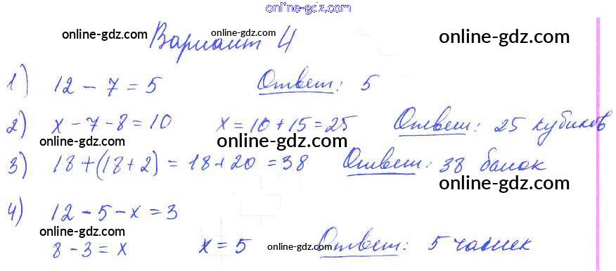 Готовые домашние задания по Математике за 2, 3, 4 класс Контрольные работы Волкова Школа России 2017 - Итоговая контрольная работа за 3 четверть. Контрольная работа 2 2 Класс Вариант 4