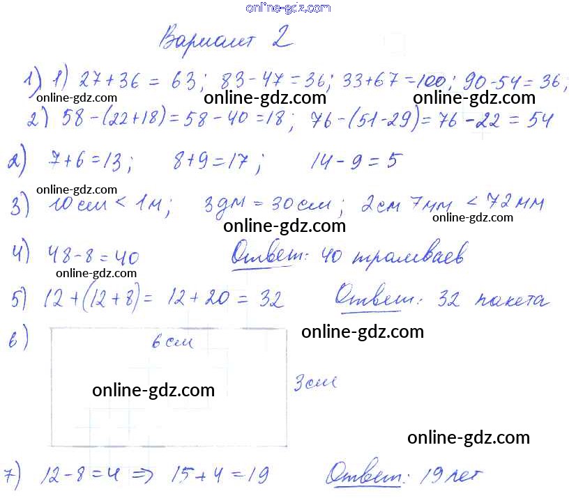Готовые домашние задания по Математике за 2, 3, 4 класс Контрольные работы Волкова Школа России 2017 - Итоговая контрольная работа за второй класс 2 Класс Вариант 2