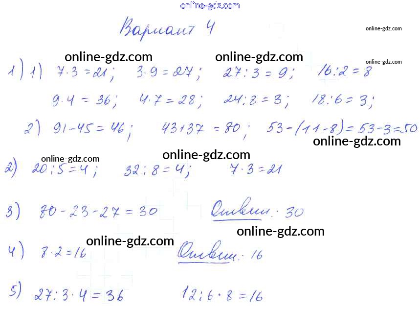 Готовые домашние задания по Математике за 2, 3, 4 класс Контрольные работы Волкова Школа России 2017 - Тема «Умножение и деление» стр. 35 3 Класс Вариант 4