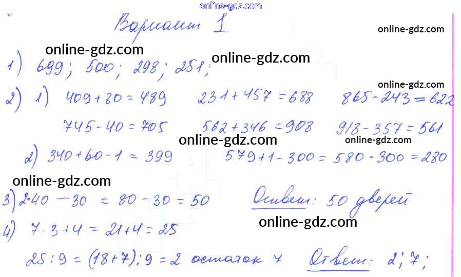 Готовые домашние задания по Математике за 2, 3, 4 класс Контрольные работы Волкова Школа России 2017 - Итоговые контрольные работы за 3 класс. Контрольная работа 2 3 Класс Вариант 1