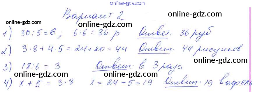 Готовые домашние задания по Математике за 2, 3, 4 класс Контрольные работы Волкова Школа России 2017 - Итоговая контрольная работа за 2 четверть. Контрольная работа 3 3 Класс Вариант 2