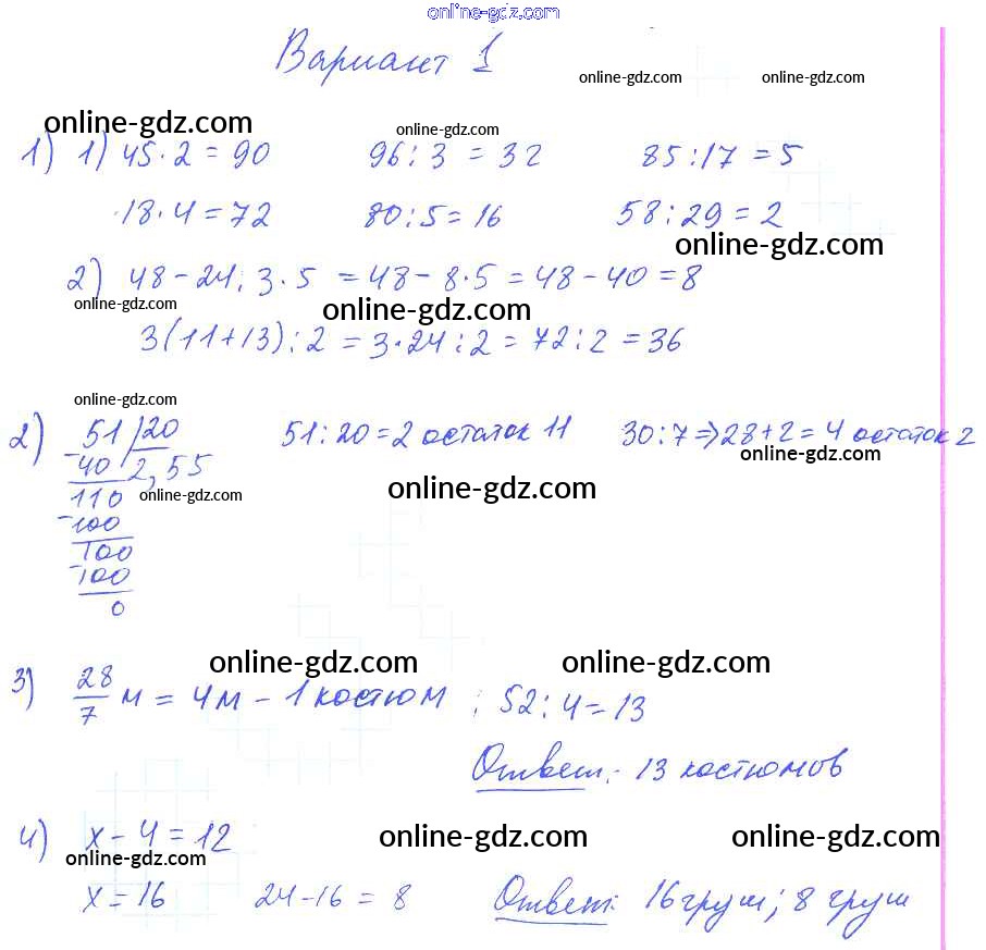 Готовые домашние задания по Математике за 2, 3, 4 класс Контрольные работы Волкова Школа России 2017 - Итоговая контрольная работа за 3 четверть. Контрольная работа 1 3 Класс Вариант 1