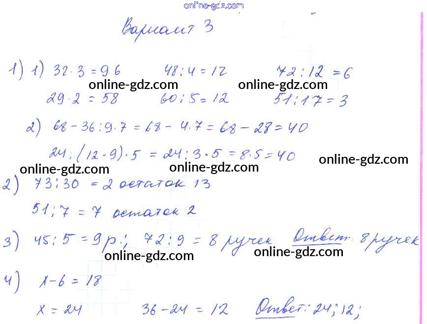 Готовые домашние задания по Математике за 2, 3, 4 класс Контрольные работы Волкова Школа России 2017 - Итоговая контрольная работа за 3 четверть. Контрольная работа 1 3 Класс Вариант 3