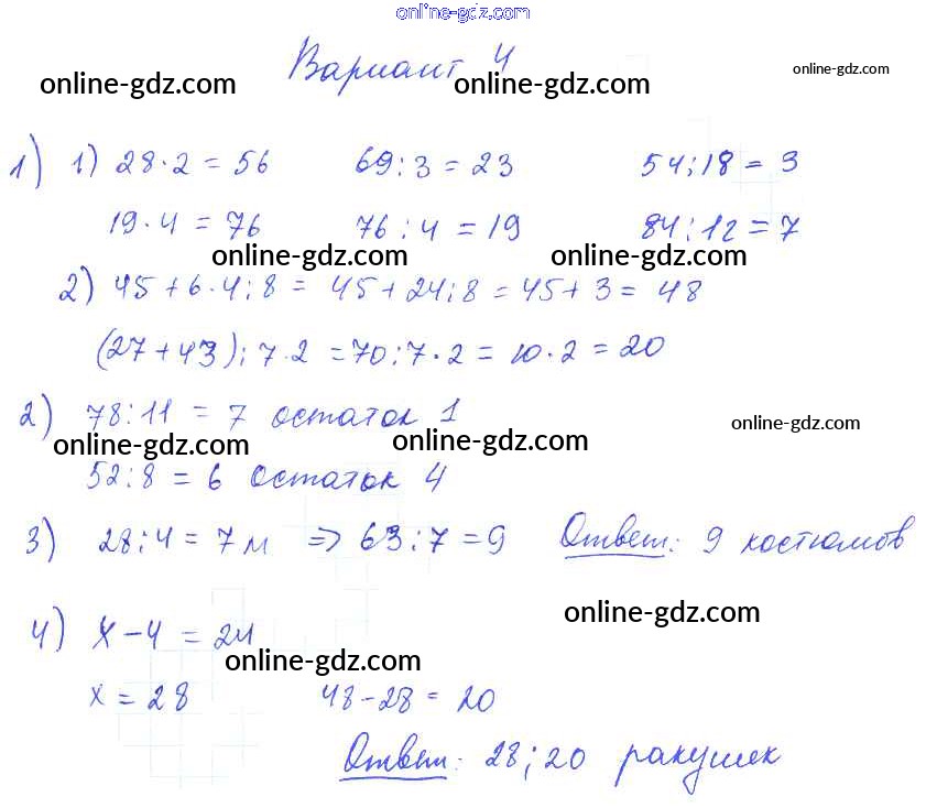 Готовые домашние задания по Математике за 2, 3, 4 класс Контрольные работы Волкова Школа России 2017 - Итоговая контрольная работа за 3 четверть. Контрольная работа 1 3 Класс Вариант 4