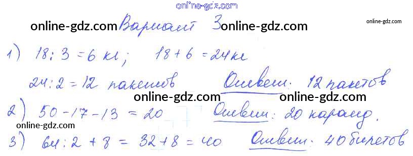 Готовые домашние задания по Математике за 2, 3, 4 класс Контрольные работы Волкова Школа России 2017 - Итоговая контрольная работа за 3 четверть. Контрольная работа 2 3 Класс Вариант 3