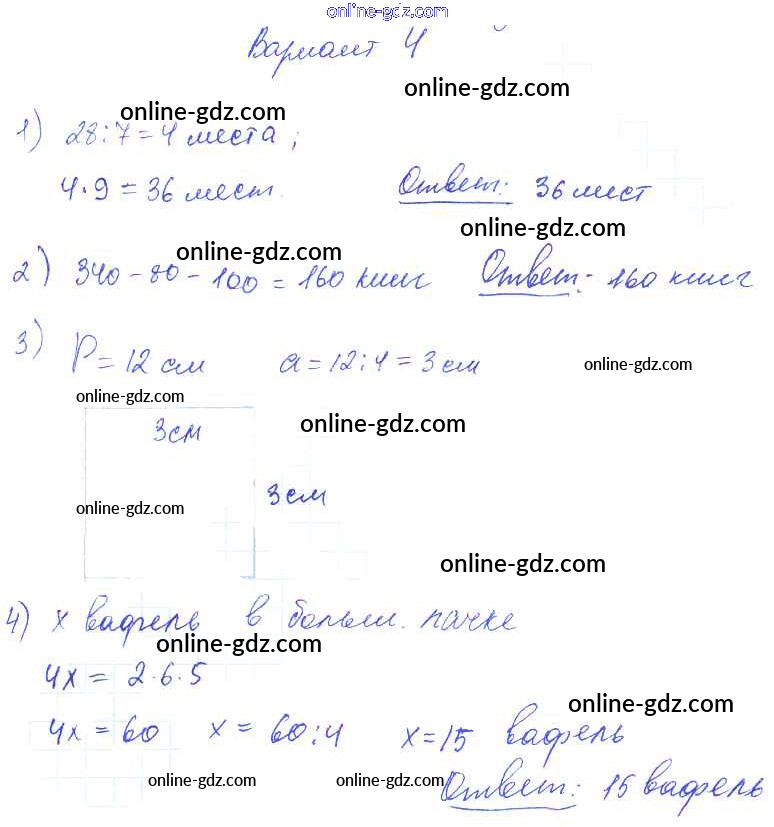 Готовые домашние задания по Математике за 2, 3, 4 класс Контрольные работы Волкова Школа России 2017 - Итоговые контрольные работы за 3 класс. Контрольная работа 1 3 Класс Вариант 4