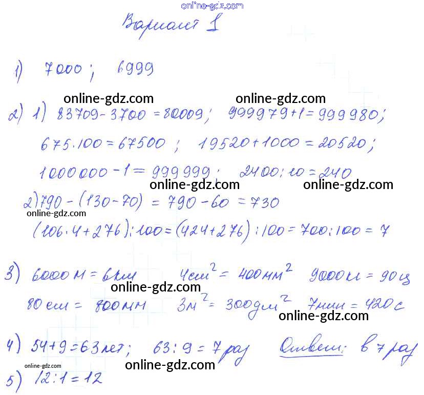 Готовые домашние задания по Математике за 2, 3, 4 класс Контрольные работы Волкова Школа России 2017 - Тема «Числа, которые больше 1000. Нумерация» стр. 57 4 Класс Вариант 1