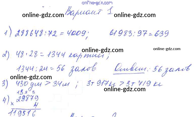 Готовые домашние задания по Математике за 2, 3, 4 класс Контрольные работы Волкова Школа России 2017 - Итоговые контрольные работы за курс начальной школы. Контрольная работа 2 4 Класс Вариант 1