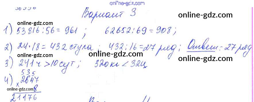 Готовые домашние задания по Математике за 2, 3, 4 класс Контрольные работы Волкова Школа России 2017 - Итоговые контрольные работы за курс начальной школы. Контрольная работа 2 4 Класс Вариант 3