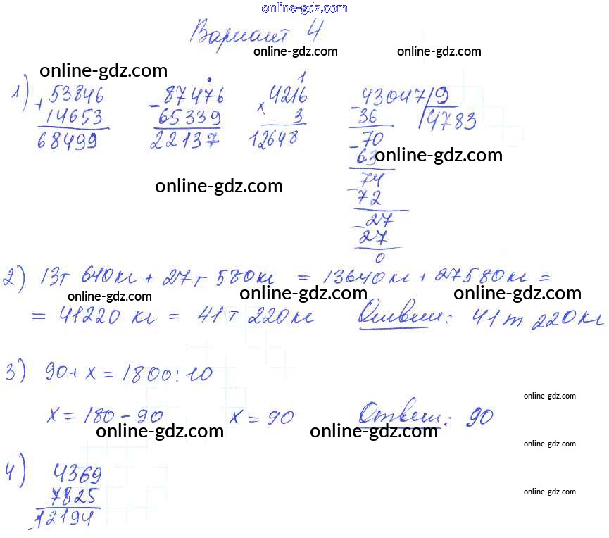 Готовые домашние задания по Математике за 2, 3, 4 класс Контрольные работы Волкова Школа России 2017 - Итоговая контрольная работы за 2 четверть. Контрольная работа 1 4 Класс Вариант 4