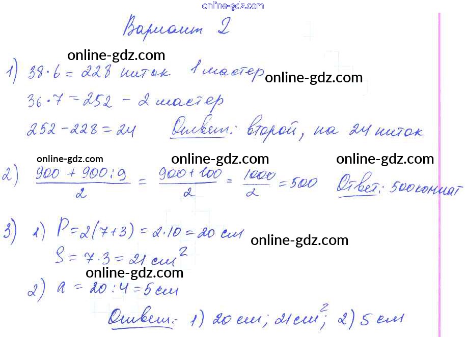 Готовые домашние задания по Математике за 2, 3, 4 класс Контрольные работы Волкова Школа России 2017 - Итоговая контрольная работы за 2 четверть. Контрольная работа 2 4 Класс Вариант 2