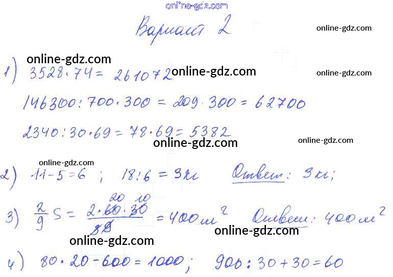 Готовые домашние задания по Математике за 2, 3, 4 класс Контрольные работы Волкова Школа России 2017 - Темы «Скорость, время, пройденное расстояние» и «Умножение на числа, оканчивающиеся нулями» стр. 65 4 Класс Вариант 2