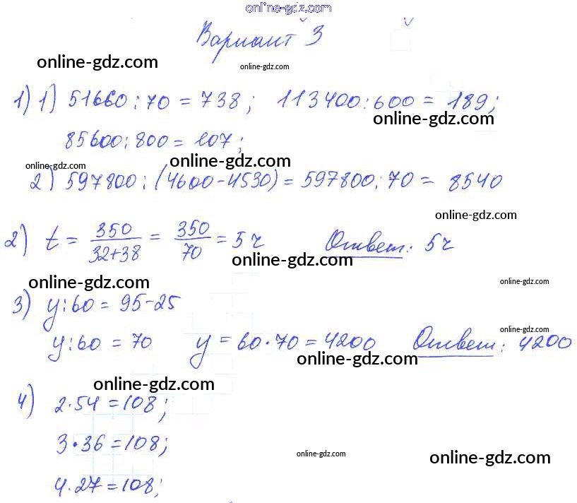 Готовые домашние задания по Математике за 2, 3, 4 класс Контрольные работы Волкова Школа России 2017 - Итоговая контрольная работа за 3 четверть 4 Класс Вариант 3