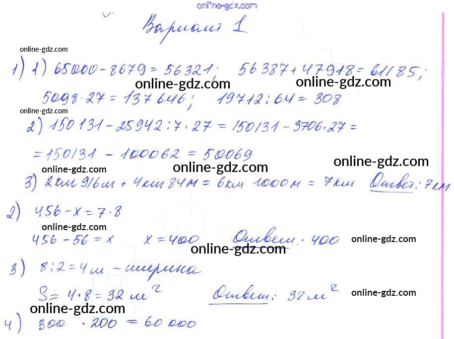 Готовые домашние задания по Математике за 2, 3, 4 класс Контрольные работы Волкова Школа России 2017 - Тема «Деление на двузначное число» стр. 71 4 Класс Вариант 1