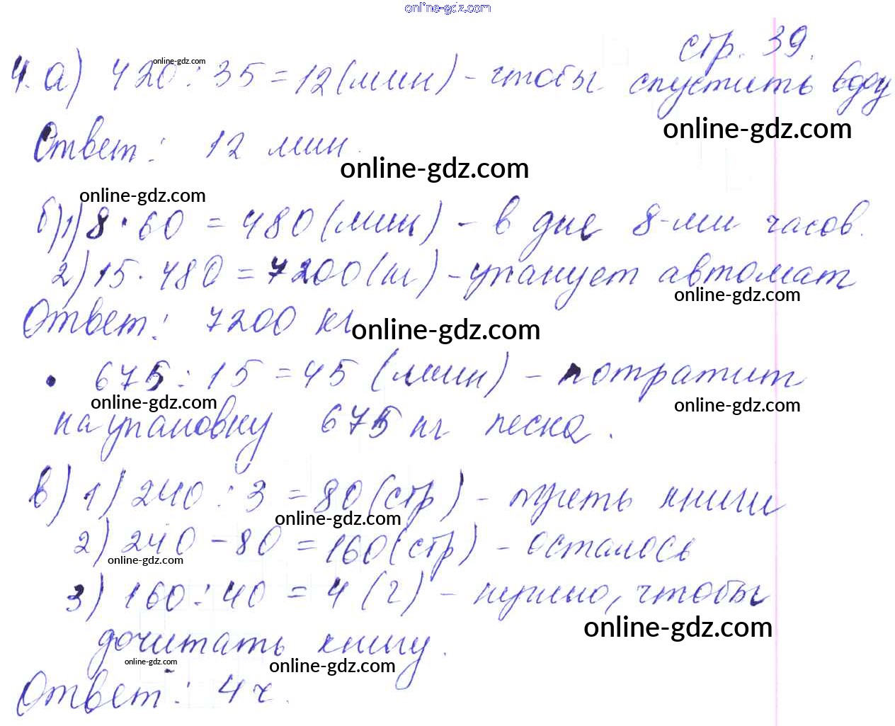 Готовые домашние задания по Математике за 4 класс Рабочая тетрадь Башмаков, Нефедова Планета знаний 2016 - Часть 2. Страницы 39