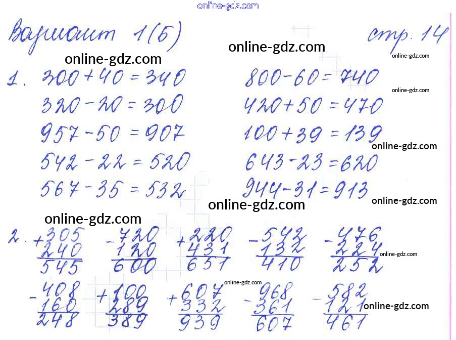 Готовые домашние задания по Математике за 4 класс Тетрадь для самостоятельной работы Самсонова УМК 2011 - Часть 1. Страницы 14