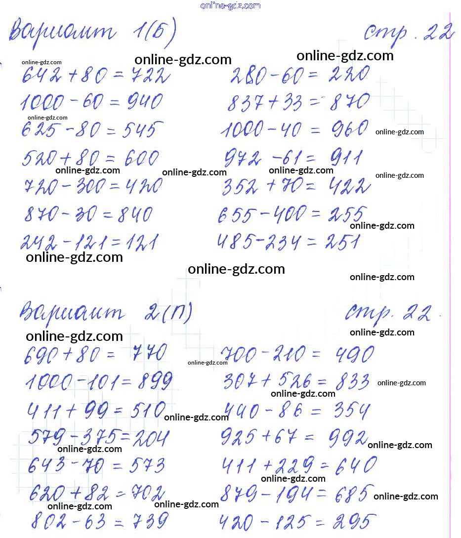 Готовые домашние задания по Математике за 4 класс Тетрадь для самостоятельной работы Самсонова УМК 2011 - Часть 1. Страницы 22