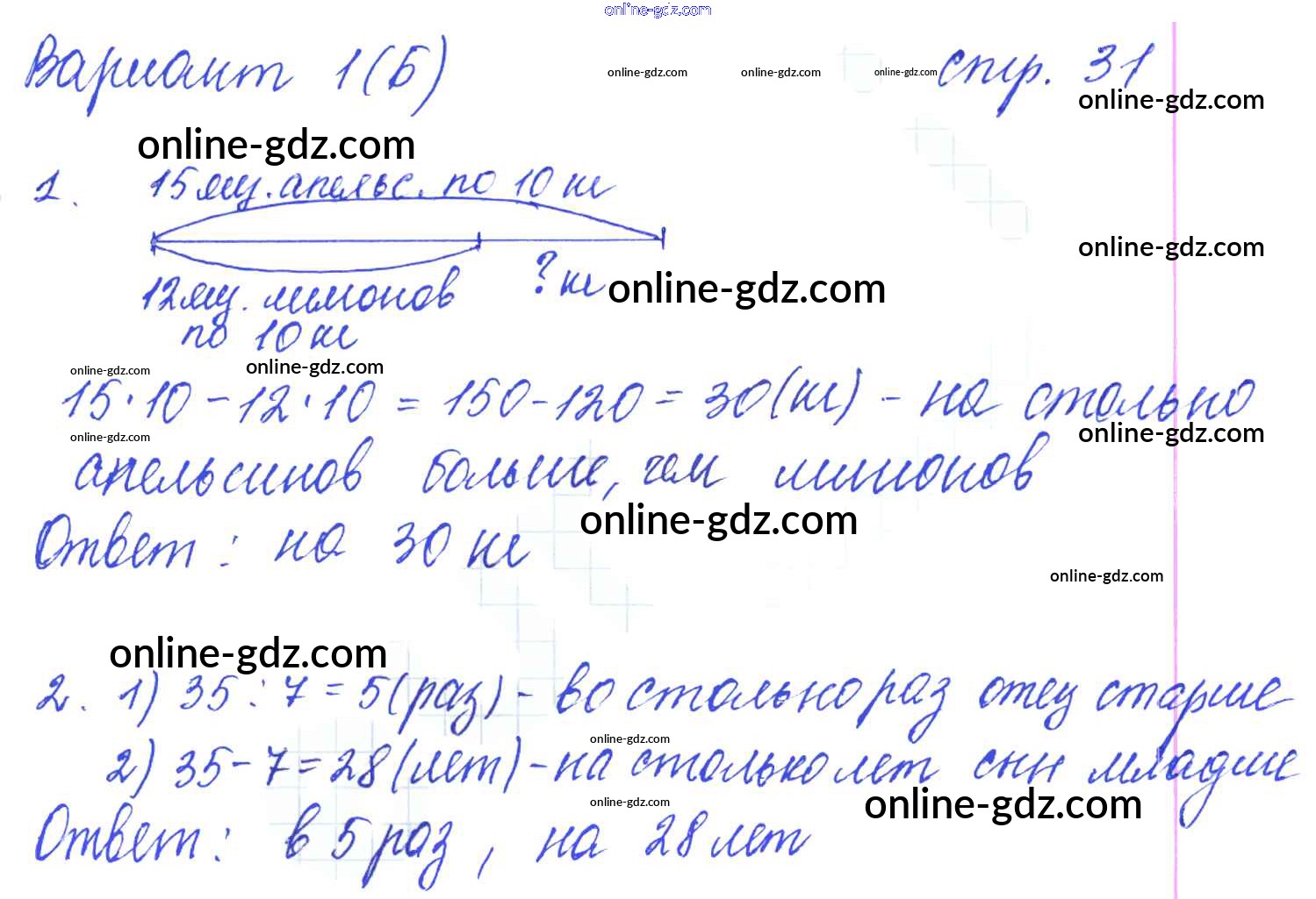 Готовые домашние задания по Математике за 4 класс Тетрадь для самостоятельной работы Самсонова УМК 2011 - Часть 1. Страницы 31