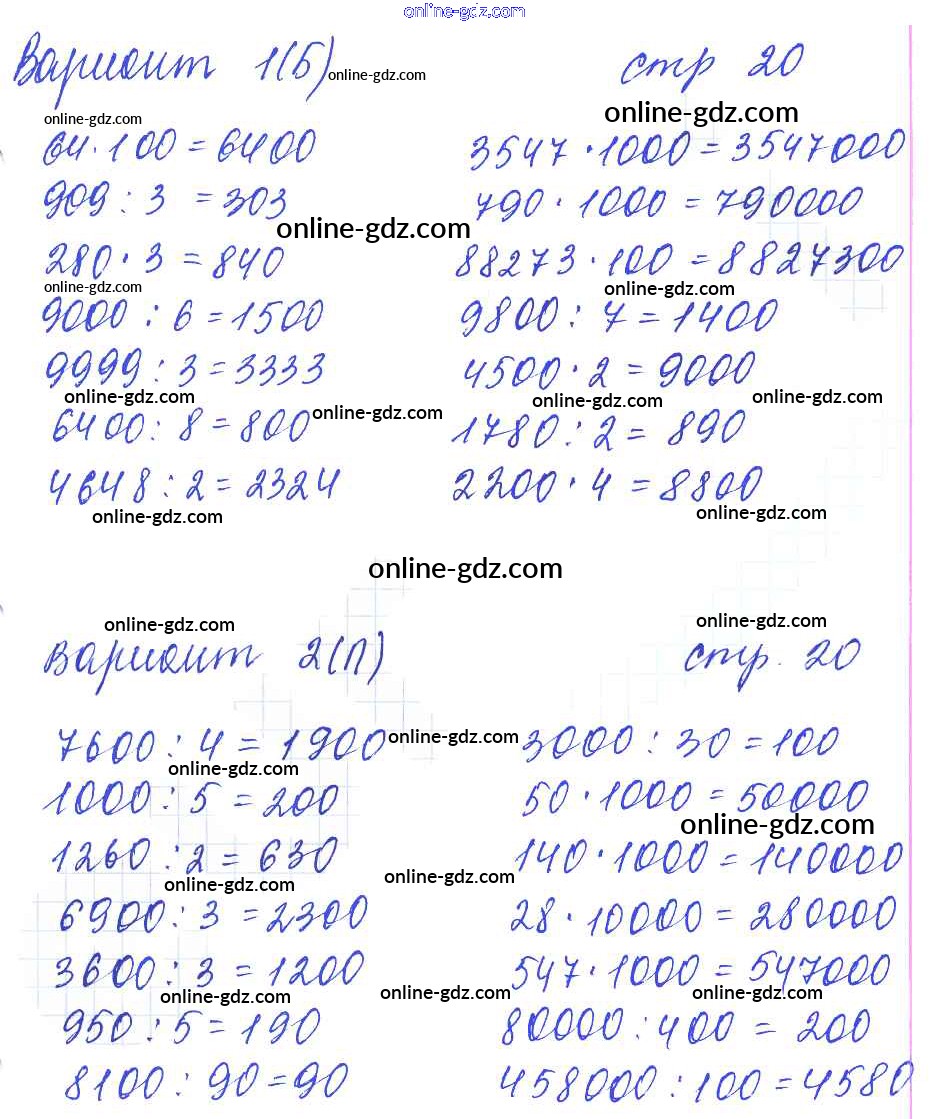 Готовые домашние задания по Математике за 4 класс Тетрадь для самостоятельной работы Самсонова УМК 2011 - Часть 2. Страницы 20