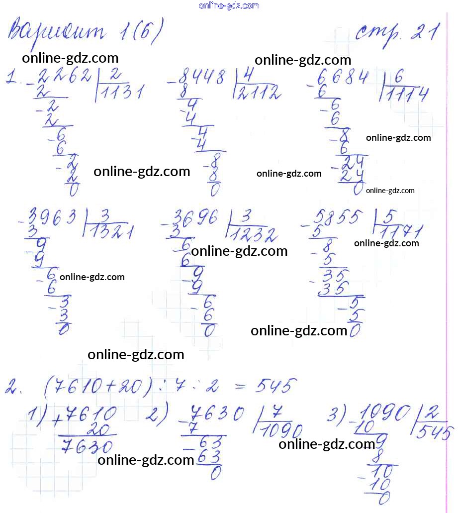 Готовые домашние задания по Математике за 4 класс Тетрадь для самостоятельной работы Самсонова УМК 2011 - Часть 2. Страницы 21