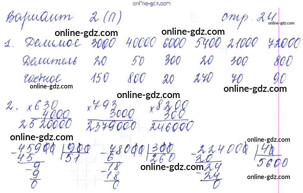 Готовые домашние задания по Математике за 4 класс Тетрадь для самостоятельной работы Самсонова УМК 2011 - Часть 2. Страницы 24