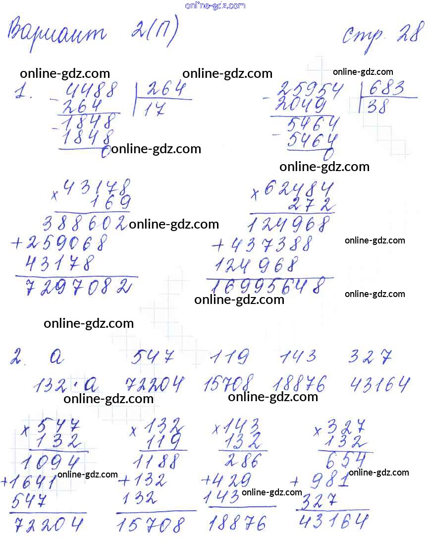 Готовые домашние задания по Математике за 4 класс Тетрадь для самостоятельной работы Самсонова УМК 2011 - Часть 2. Страницы 28
