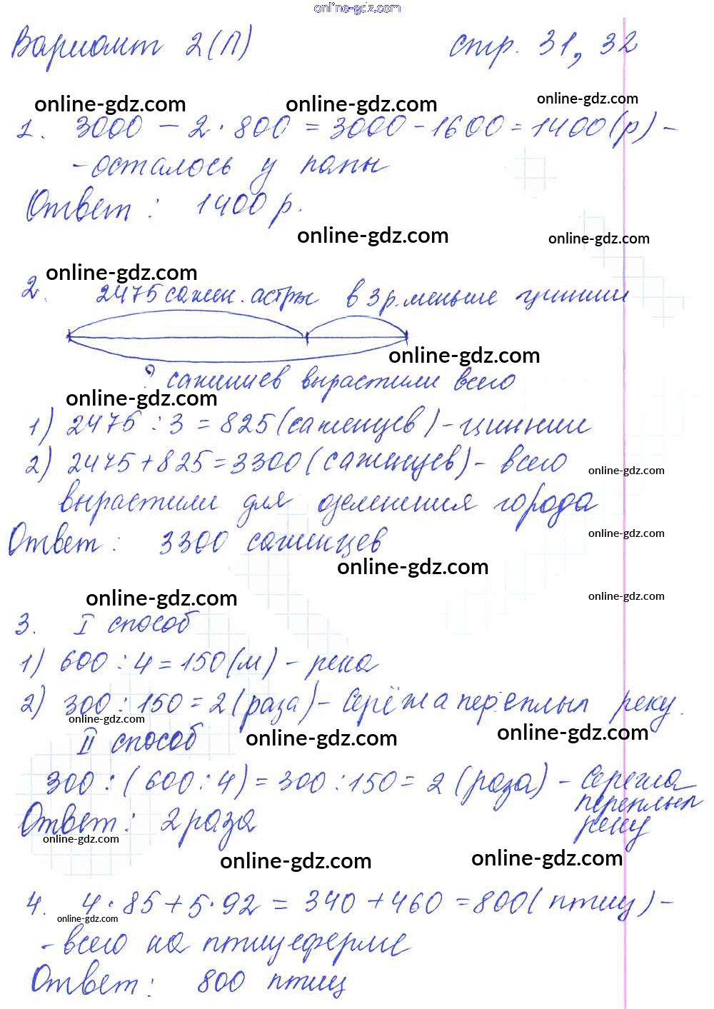 Готовые домашние задания по Математике за 4 класс Тетрадь для самостоятельной работы Самсонова УМК 2011 - Часть 2. Страницы 31-32