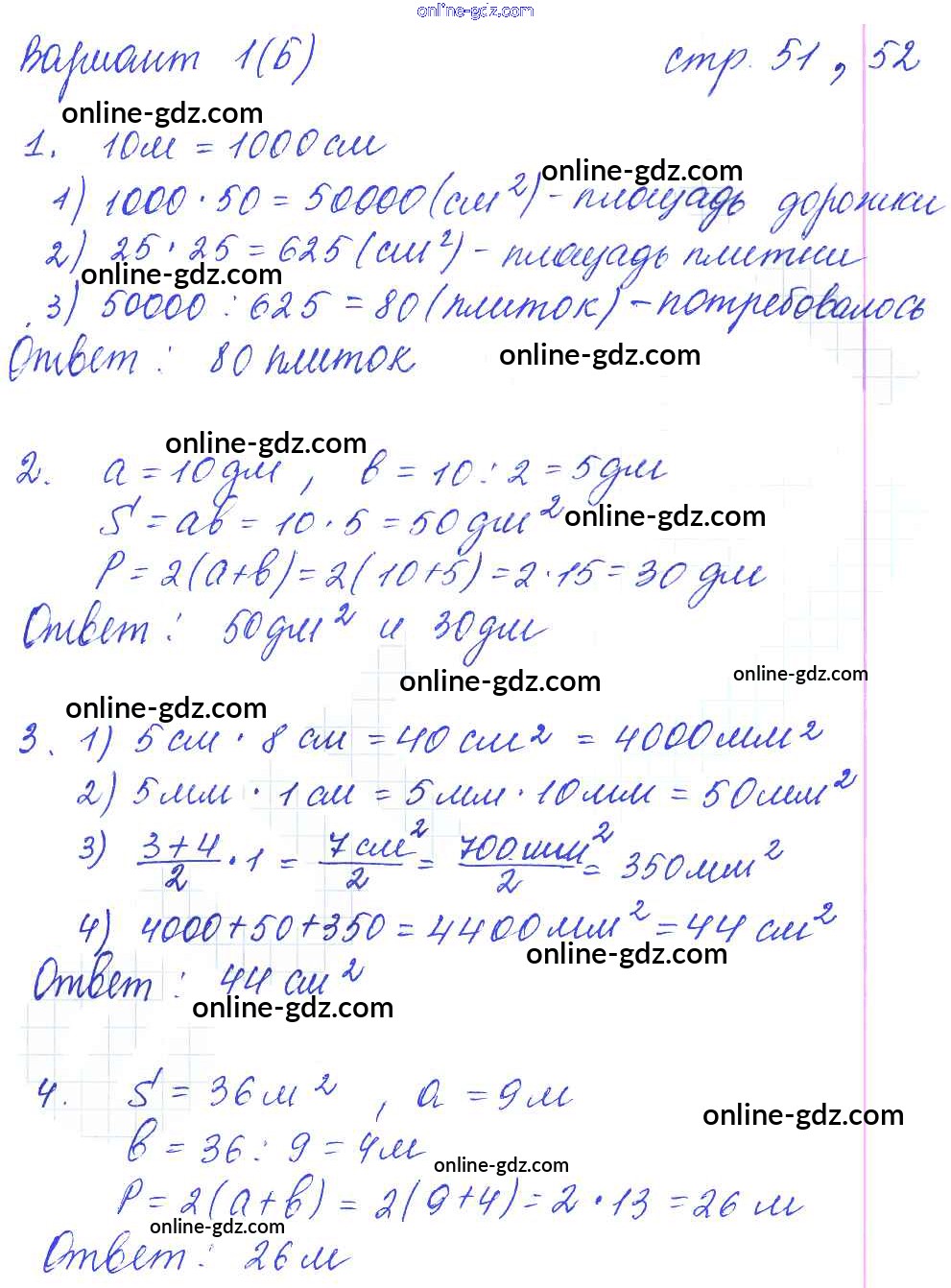 Готовые домашние задания по Математике за 4 класс Тетрадь для самостоятельной работы Самсонова УМК 2011 - Часть 2. Страницы 51-52