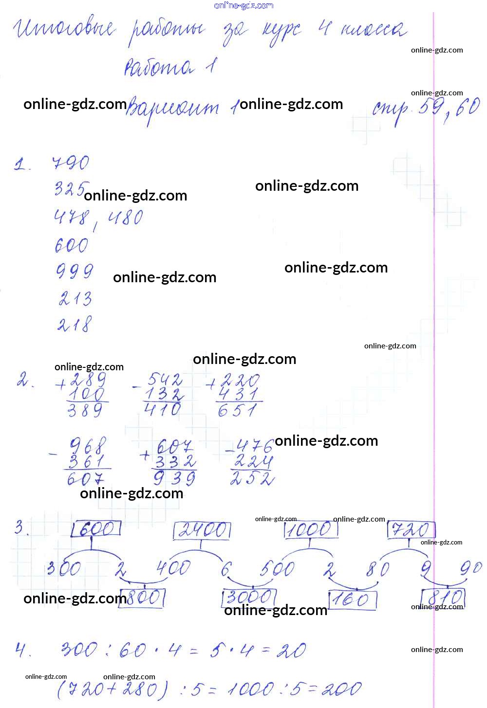 Готовые домашние задания по Математике за 4 класс Тетрадь для самостоятельной работы Самсонова УМК 2011 - Часть 2. Страницы 59-60