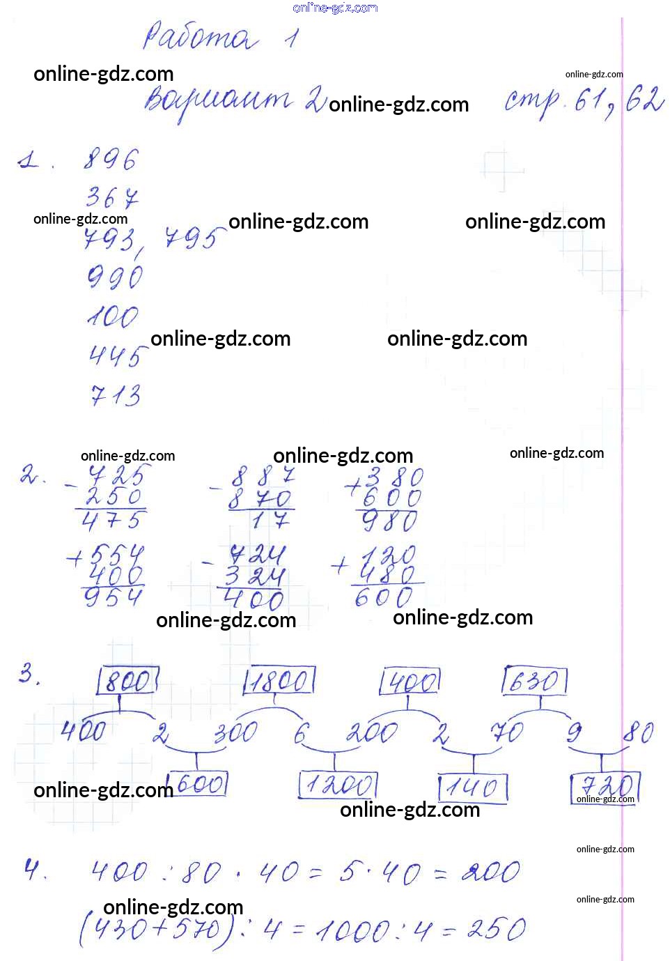 Готовые домашние задания по Математике за 4 класс Тетрадь для самостоятельной работы Самсонова УМК 2011 - Часть 2. Страницы 61-62