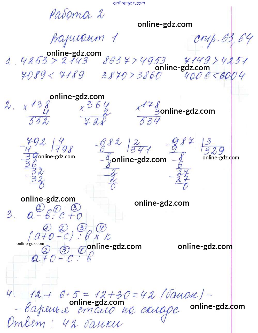 Готовые домашние задания по Математике за 4 класс Тетрадь для самостоятельной работы Самсонова УМК 2011 - Часть 2. Страницы 63-64