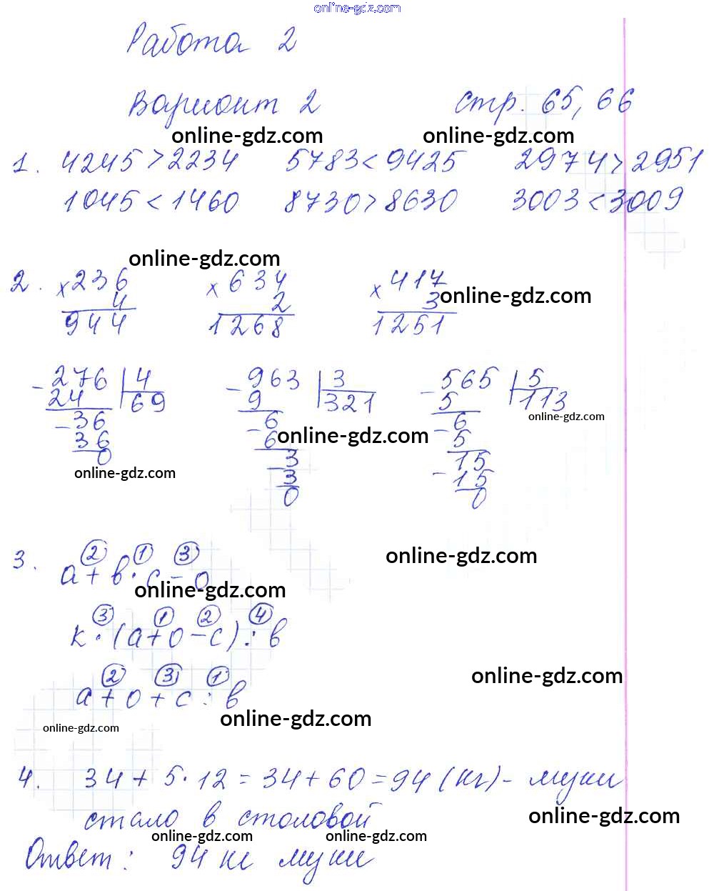Готовые домашние задания по Математике за 4 класс Тетрадь для самостоятельной работы Самсонова УМК 2011 - Часть 2. Страницы 65-66