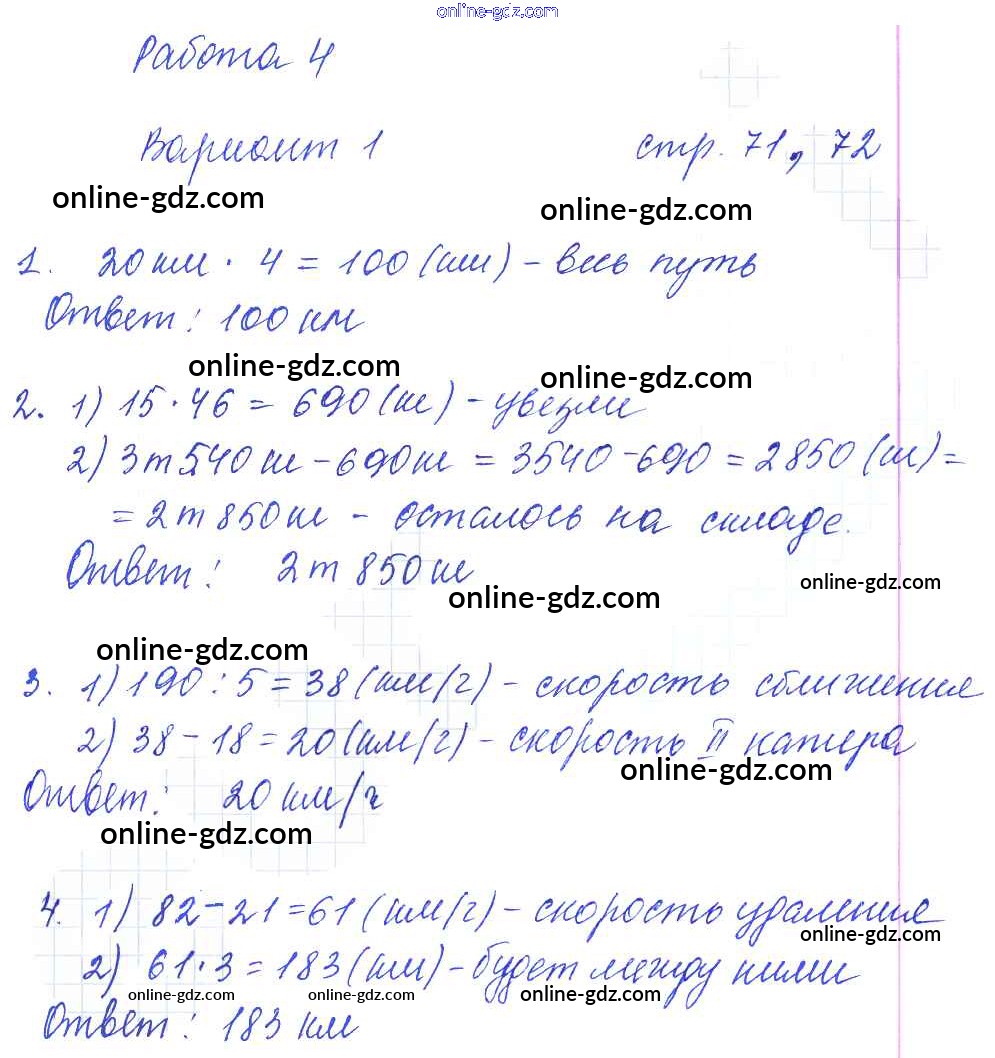 Готовые домашние задания по Математике за 4 класс Тетрадь для самостоятельной работы Самсонова УМК 2011 - Часть 2. Страницы 71-72