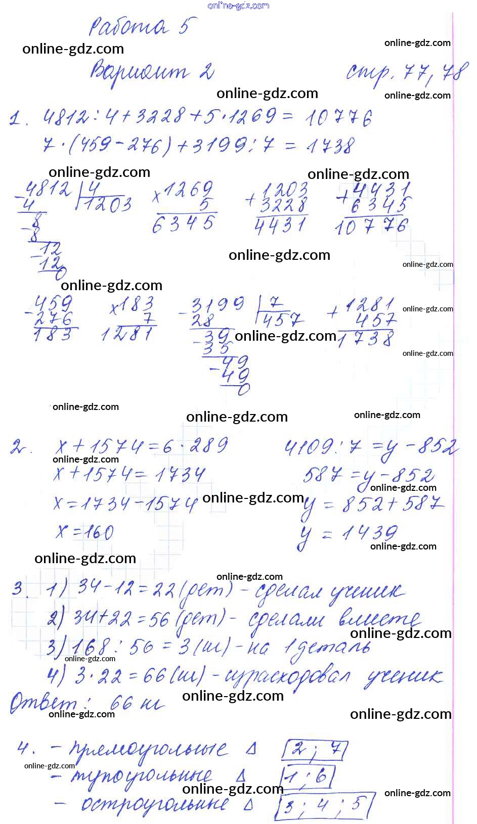 Готовые домашние задания по Математике за 4 класс Тетрадь для самостоятельной работы Самсонова УМК 2011 - Часть 2. Страницы 77-78