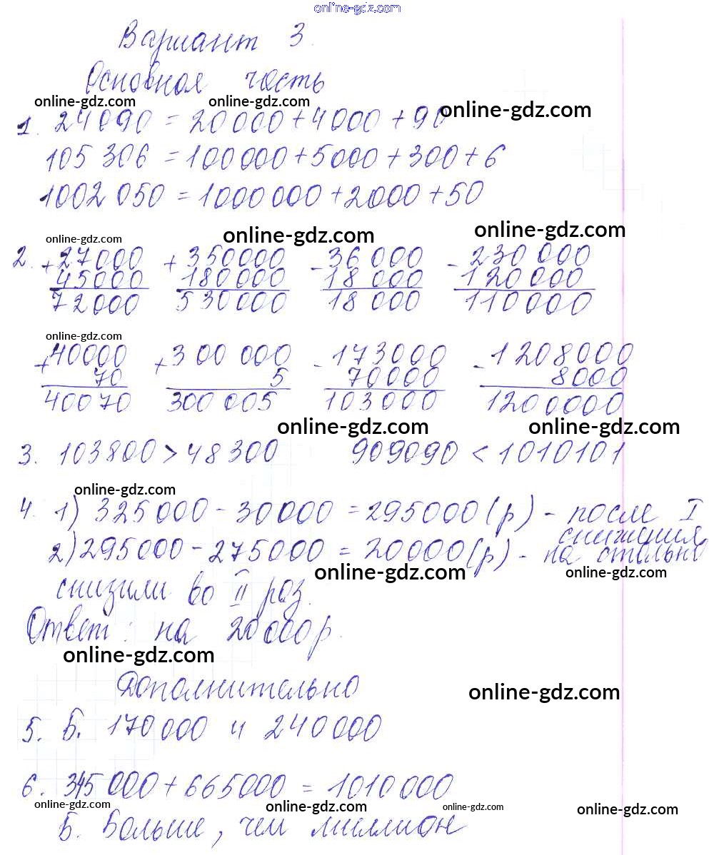 Готовые домашние задания по Математике за 4 класс Тесты и самостоятельные работы для текущего контроля Нефедова Планета знаний 2016 - СР-1 Самостоятельные работы (варианты) 3