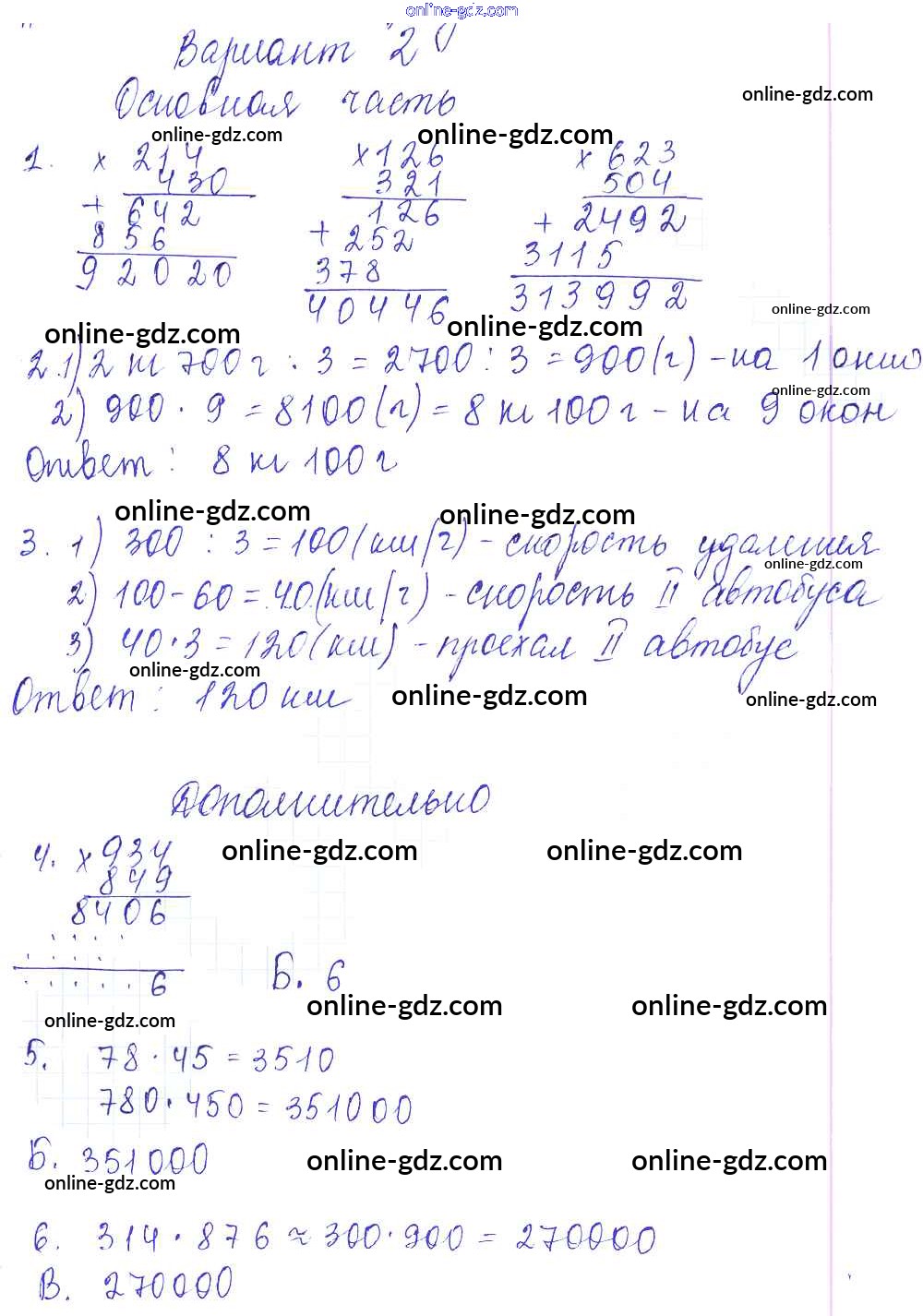 Готовые домашние задания по Математике за 4 класс Тесты и самостоятельные работы для текущего контроля Нефедова Планета знаний 2016 - СР-6 Самостоятельные работы (варианты) 2