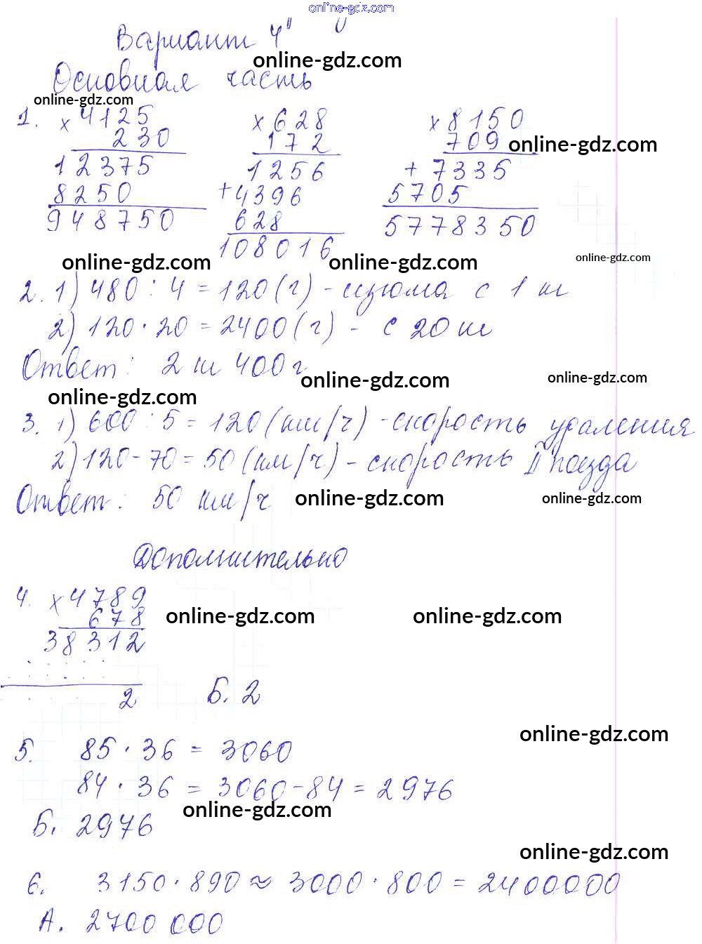 Готовые домашние задания по Математике за 4 класс Тесты и самостоятельные работы для текущего контроля Нефедова Планета знаний 2016 - СР-6 Самостоятельные работы (варианты) 4