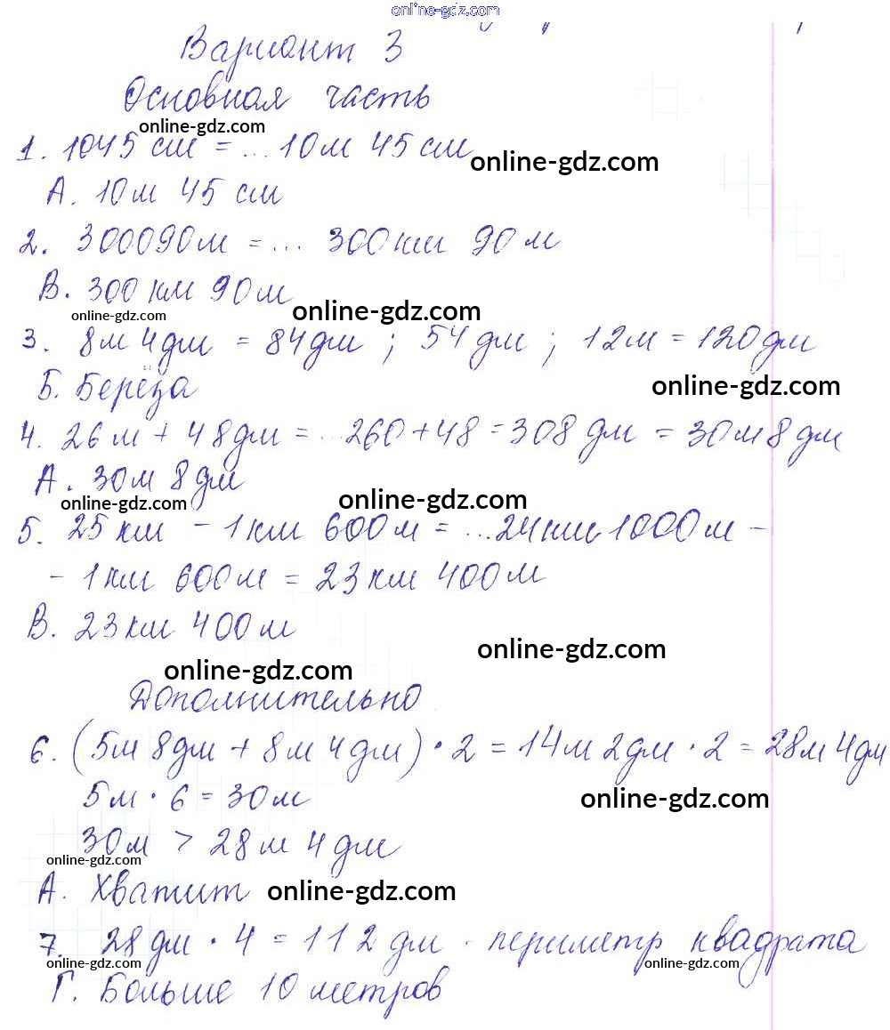 Готовые домашние задания по Математике за 4 класс Тесты и самостоятельные работы для текущего контроля Нефедова Планета знаний 2016 - Тест №2 Тесты (варианты) 3