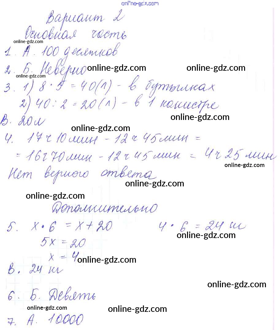 Готовые домашние задания по Математике за 4 класс Тесты и самостоятельные работы для текущего контроля Нефедова Планета знаний 2016 - Тест №8 Тесты (варианты) 2