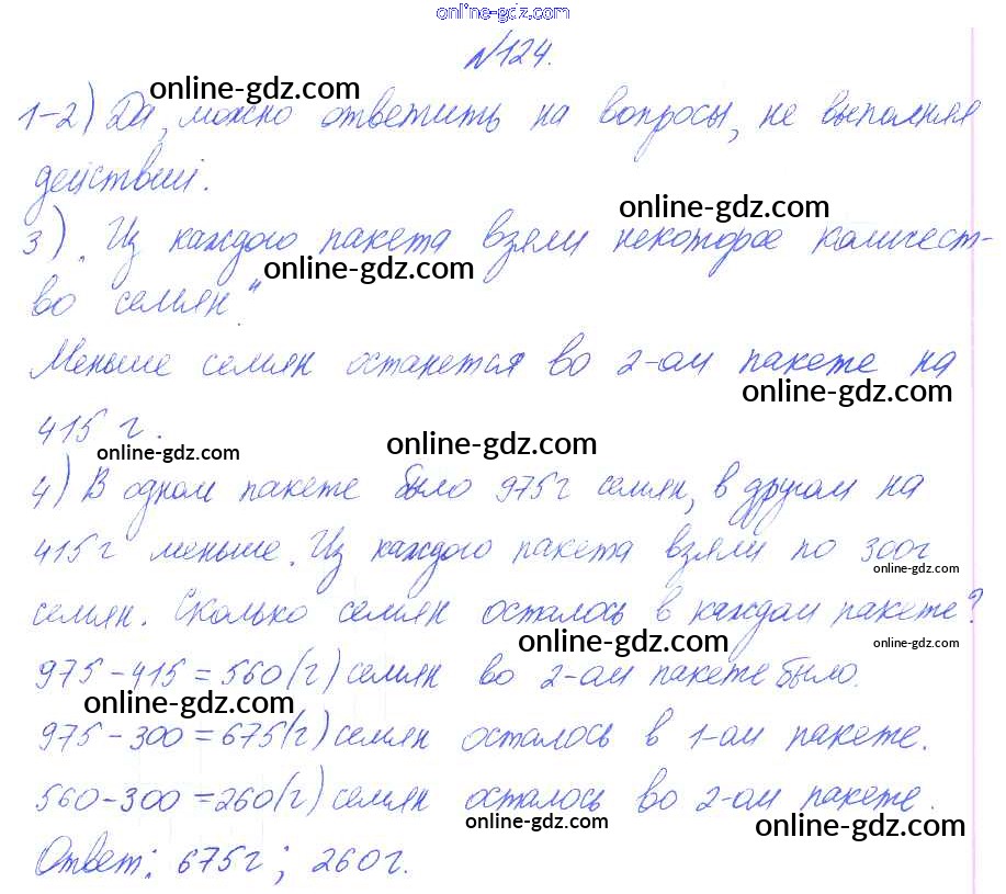 Готовые домашние задания по Математике за 4 класс Учебник Аргинская, Ивановская УМК 2014 - Упражнения 124
