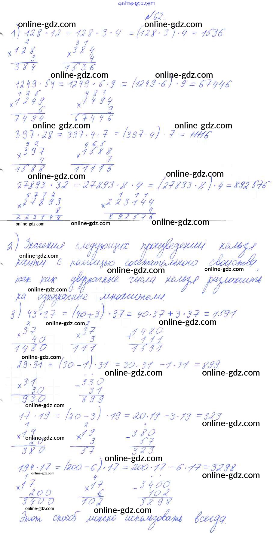 Готовые домашние задания по Математике за 4 класс Учебник Аргинская, Ивановская УМК 2014 - Упражнения 62