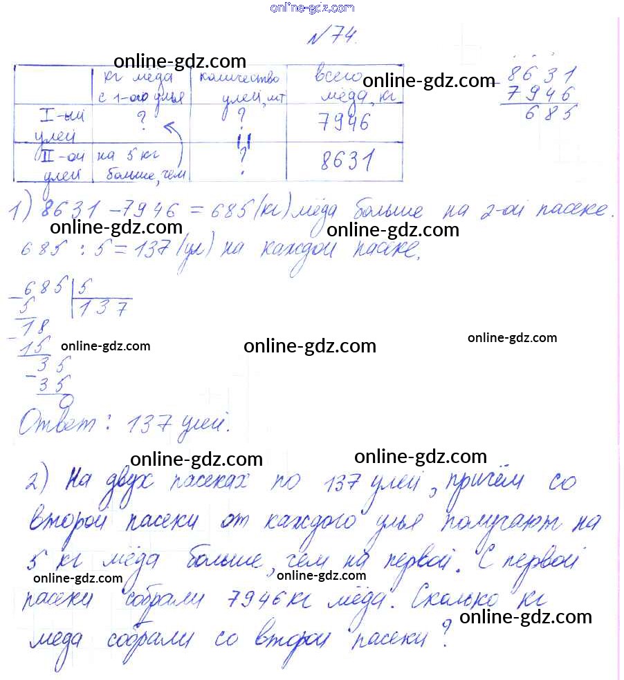 Готовые домашние задания по Математике за 4 класс Учебник Аргинская, Ивановская УМК 2014 - Упражнения 74