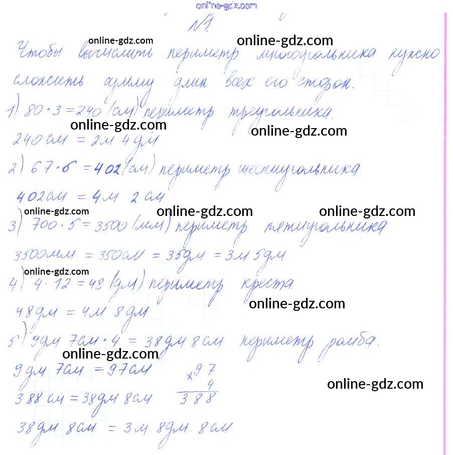 Готовые домашние задания по Математике за 4 класс Учебник Башмаков, Нефедова Планета знаний 2012 - Вычисляем периметр многоугольника Часть 1 1