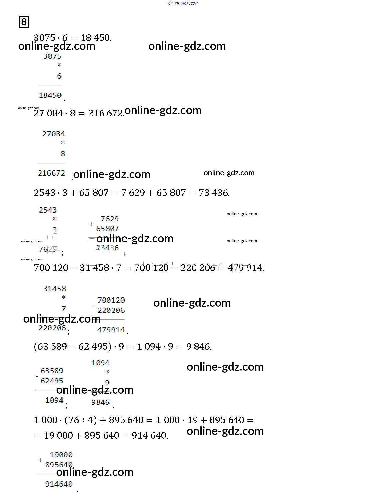 Готовые домашние задания по Математике за 4 класс Учебник Башмаков, Нефедова Планета знаний 2012 - Свойства умножения Часть 1 8
