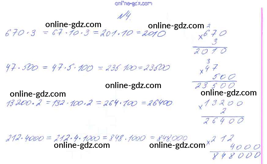 Готовые домашние задания по Математике за 4 класс Учебник Башмаков, Нефедова Планета знаний 2012 - Умножаем круглые числа Часть 1 4