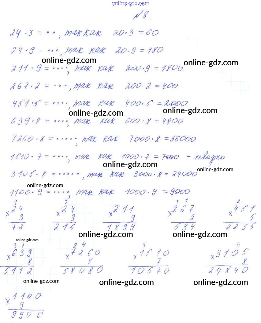Готовые домашние задания по Математике за 4 класс Учебник Башмаков, Нефедова Планета знаний 2012 - Умножаем круглые числа Часть 1 8