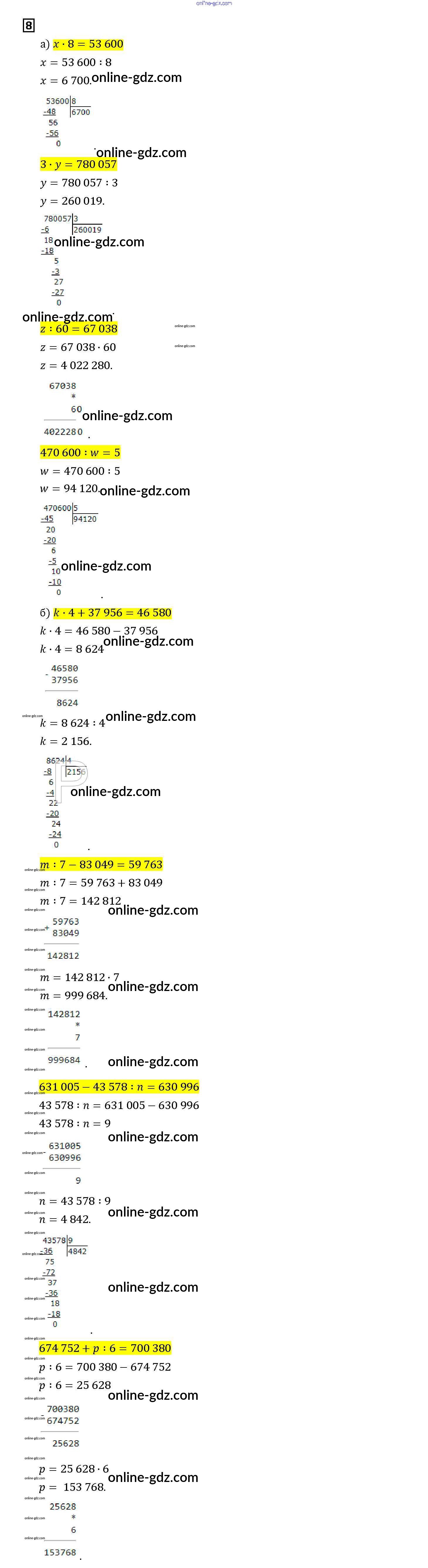 Готовые домашние задания по Математике за 4 класс Учебник Башмаков, Нефедова Планета знаний 2012 - Делим числа с нулями Часть 1 8