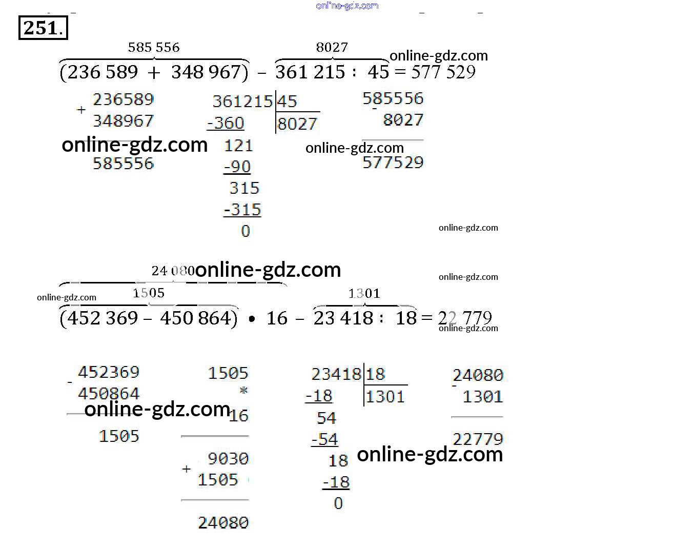 Готовые домашние задания по Математике за 4 класс Учебник Чекин Перспективная начальная школа 2012 - Часть 2 (упражнения) 251