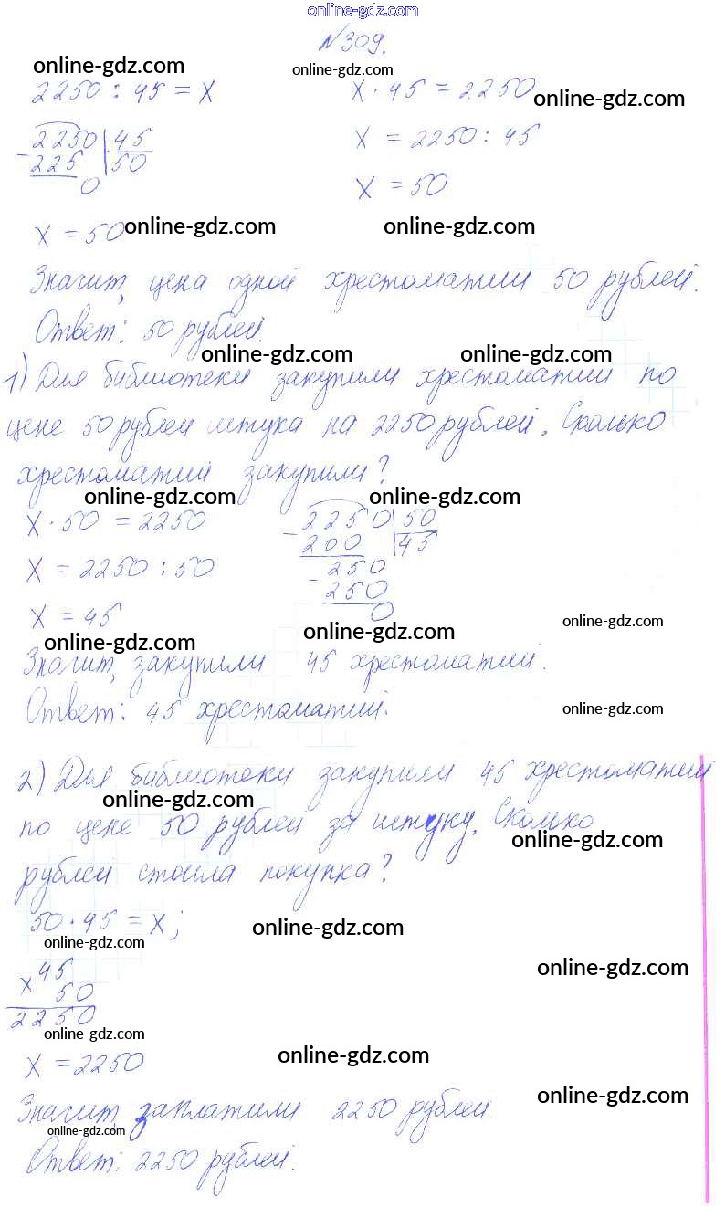 Готовые домашние задания по Математике за 4 класс Учебник Чекин Перспективная начальная школа 2012 - Часть 2 (упражнения) 309