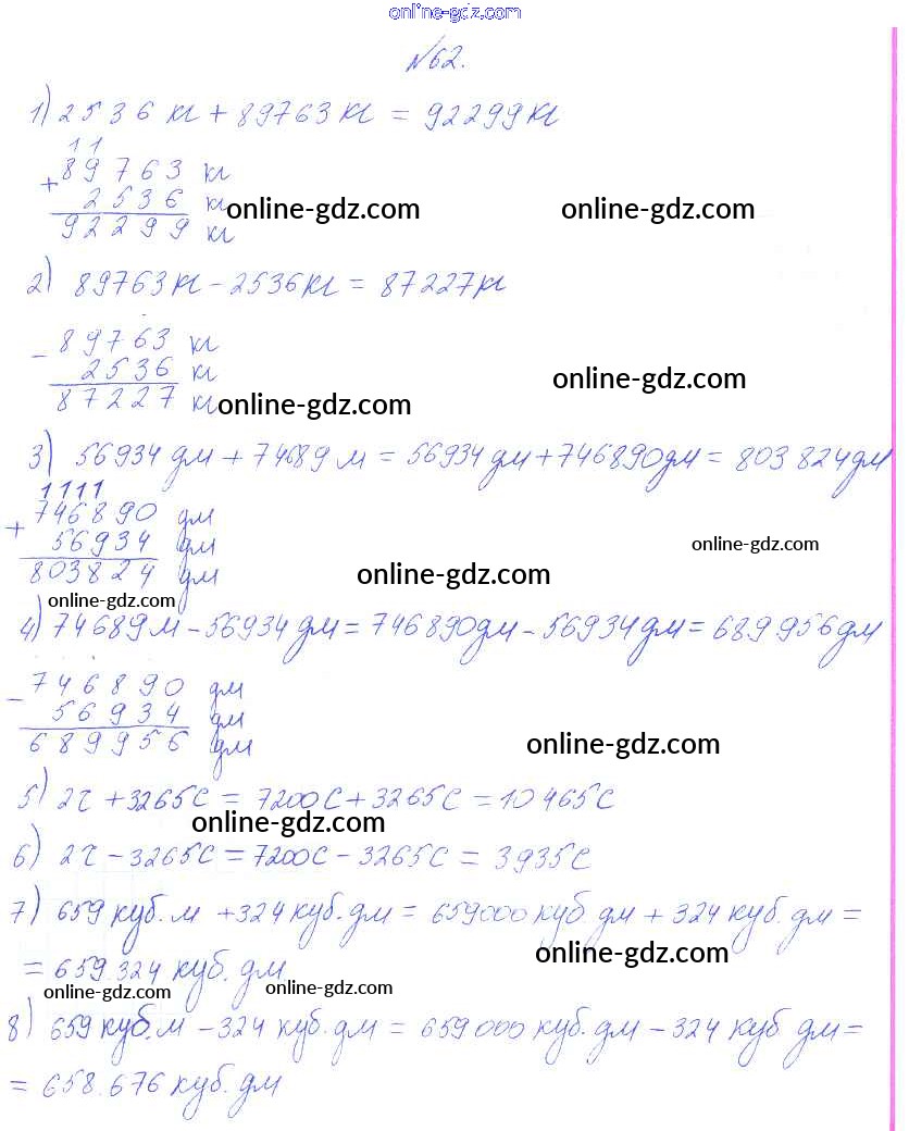 Готовые домашние задания по Математике за 4 класс Учебник Чекин Перспективная начальная школа 2012 - Часть 2 (упражнения) 62